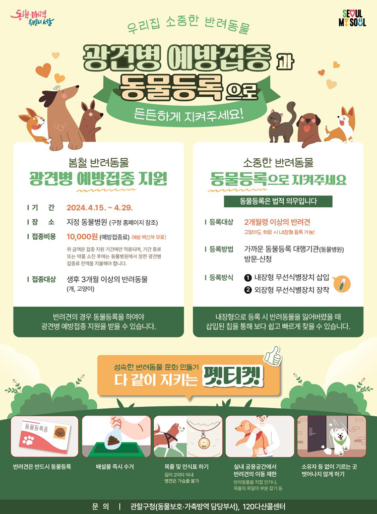 • 법적 의무: 우리나라에서는 광견병 예방 접종이 법적으로 의무화되어 있음