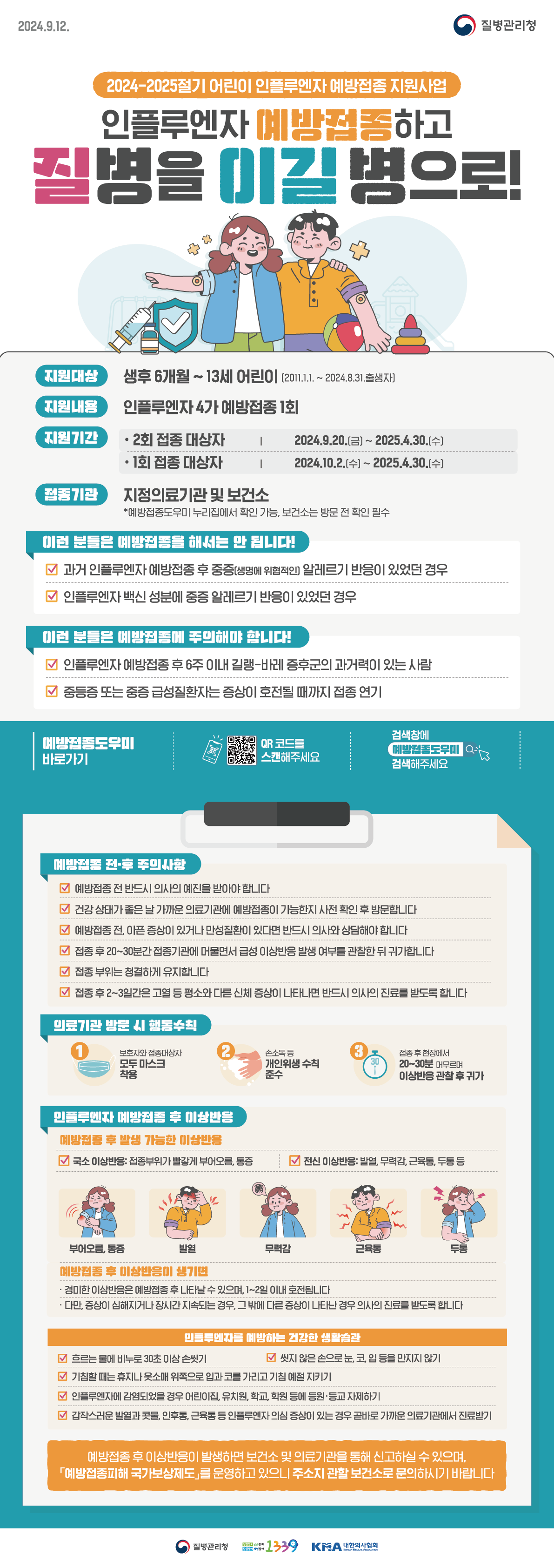 단, 생후 6개월 미만의 영아는 예방접종 대상이 아니니 주의해주세요.